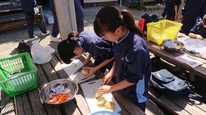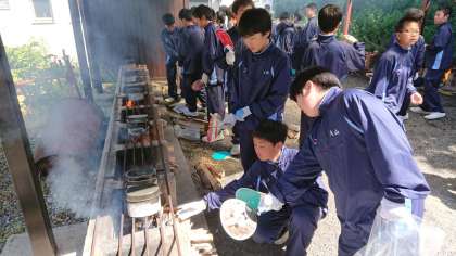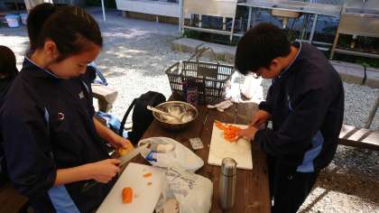 みんな仲良く協力して、野外炊事が順調に進んでいます。