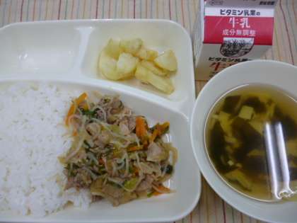 本日の献立は、豚丼、湯葉のすまし汁、焼きじゃが、牛乳です。