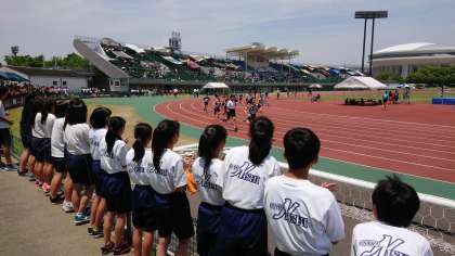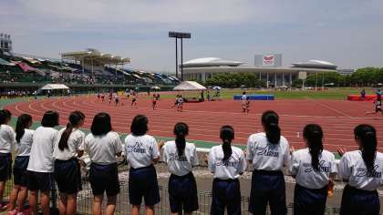 本校、陸上部も多くの種目にエントリーし、みんなで一体となって声援を送っています。
