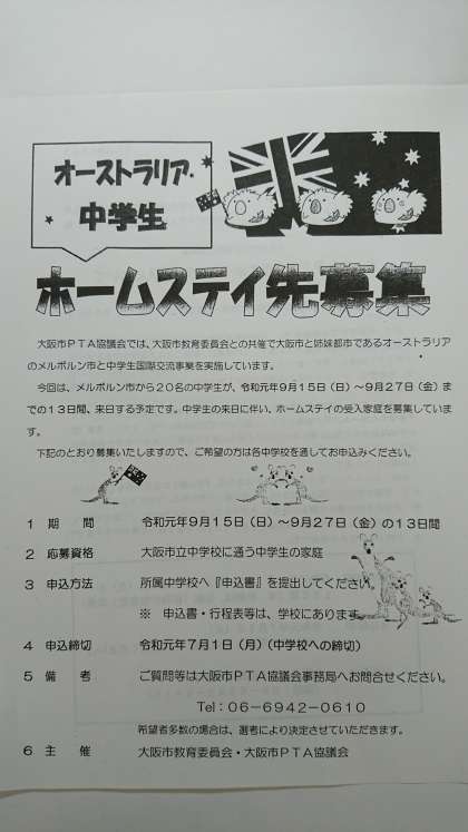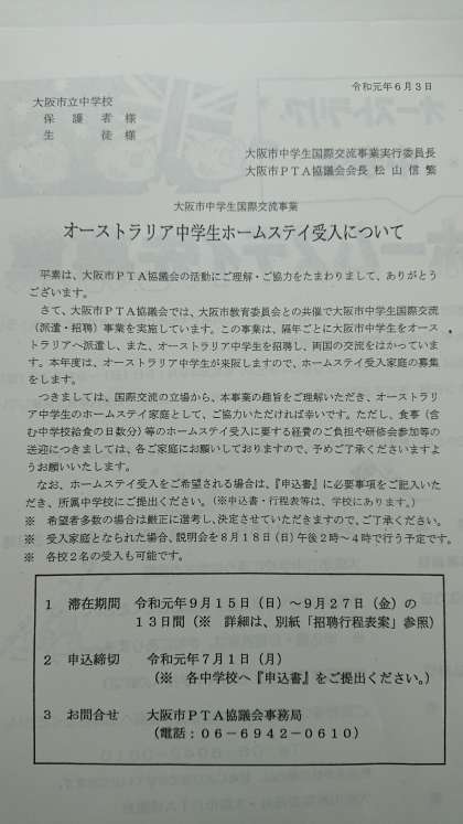 「オーストラリア中学生ホームステイ受入について」を配付しています。