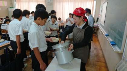 この間、教育実習の先生方には、給食の配膳をお手伝いいただき、子どもたちと一緒に食べていただきましたが、いよいよ本日で最後です。本当にありがとうございました。