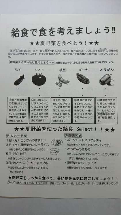 ご家庭での「食育」にお役立てくださいますようお願いします。
