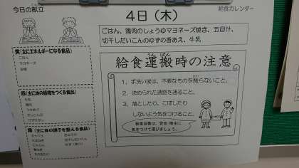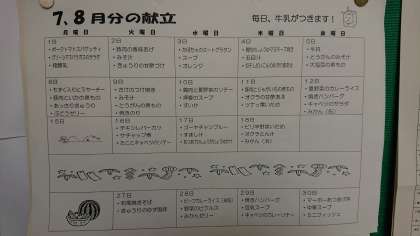 日々の献立とあわせて、月間の献立も掲示しています。