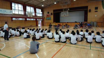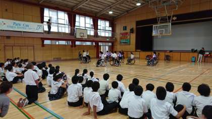 昨日お知らせしました通り、本日3,4時限目、1年生の「パラリンピック・キャラバン」を実施しました。