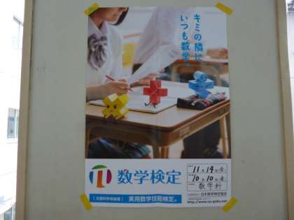 10月10日(金)が校内締切ですので、受検を希望される方は、各学年の数学科までご連絡ください。