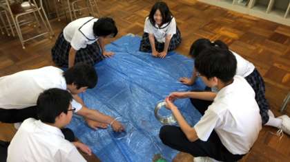 昨年までは、玄関に大型の絵画作品を展示していましたが、今年は初の試みで「ねぶた」制作をします。細かい作業の多さに苦戦しつつも、着々と形が見えてきました。