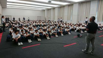 昨日、8月5日(月)に、大阪市消防局7階の、エアコンのきいた講堂で、「平和登校日」を行わせていただきました。