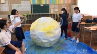 制作のメイン部分となる箇所の着色を霧吹きで行いました。