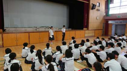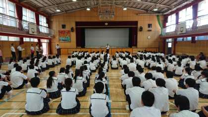 最後に、生徒会長の浜田さんと、書記の2年1組渡邉くんから、本年度の「文化発表会」の取り組みについてのお知らせがありました。