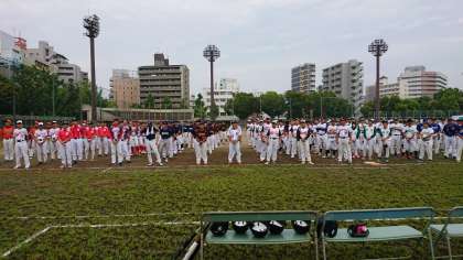 本日9月1日(日)、松島野球場において、西区PTA親善ソフトボール大会が開催されています。