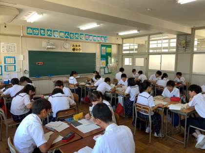 続いて3年1組の国語の授業の様子です。1組も活発に発表ができていました。生きていく中で、人前で話す機会は多くなっていきます。今のうちから「伝える力」を磨き、社会で活躍できる人になってほしいです。
