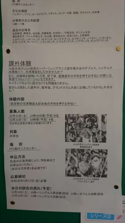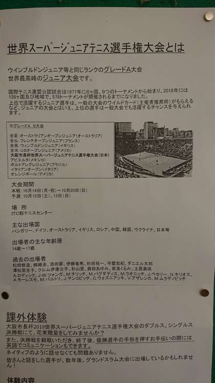そして、「世界スーパージュニアテニス選手権大会」の課外体験の募集についてお知らせします。