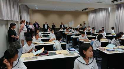6時限目の1年1組の英語の授業に、Jasmin Flenleyさんが通う、Mornington Secondary Collegeの校長先生をはじめとする先生方、大阪市PTA協議会の皆様が、視察に来られました。