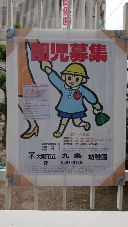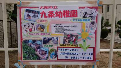 本校正門横に、九条幼稚園のポスターを掲示していただいています。