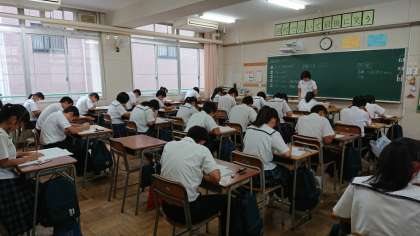 本日は、「大阪市中学校3年生統一テスト(国、社、数、理、英」です。
