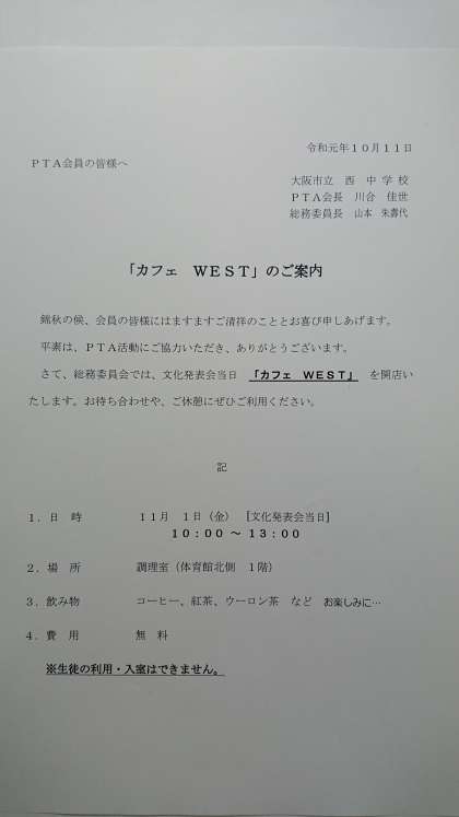 文化発表会当日、保護者の皆様には、ぜひお立ち寄りいただきますようお願いします。