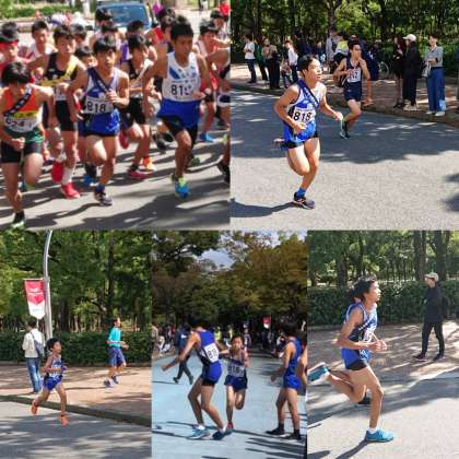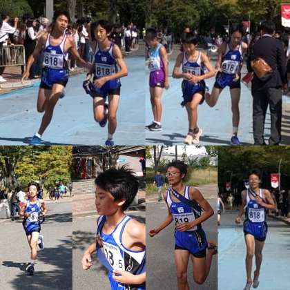 10月13日(日)長居公園周回道路において、大阪中学駅伝大阪市予選会が開催され、西中陸上部からも男子チームが参加しました。台風一過の晴天のもと、普段は短距離や跳躍を専門としている部員もメンバーに入って、1区3500m、2区〜6区2813mのコースでたすきをつなぎました。
