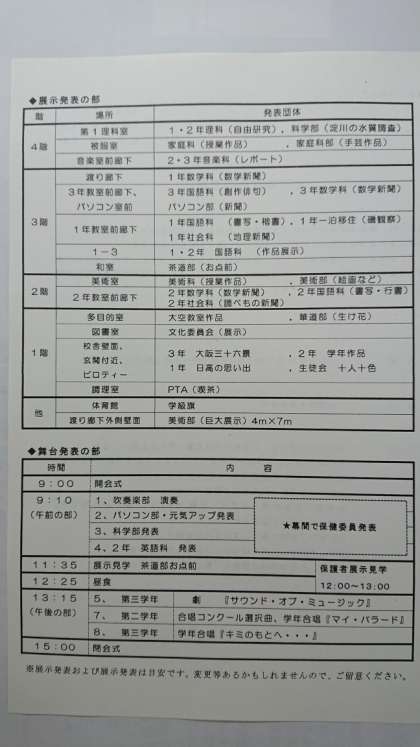 「文化発表会のご案内」を配付しています。