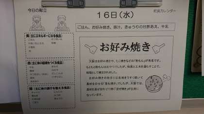 さすが大阪市ですね。給食でお好み焼きが出ます。