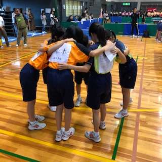 西中学校からは2年生3人、1年生3人という団体戦出場ギリギリの人数の新チームですが、西中女子伝統の円陣で士気を高めます。