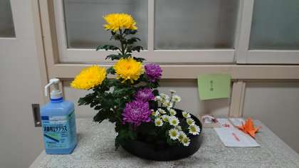 華道部のみなさんが、校長室前のお花を活け替えてくれました。