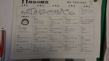 11月分の献立表