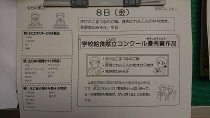 本日の献立は、「学校給食献立コンクール優秀賞」作品です。