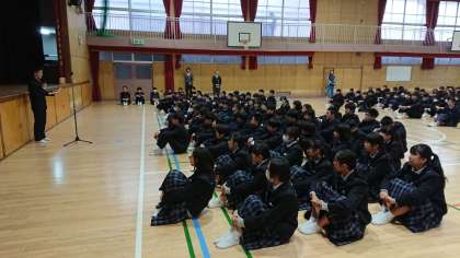このあと、野球部の賞状の伝達、そして学級旗コンクールの賞状の伝達を行います。