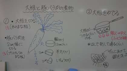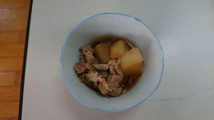 とても美味しい「大根と豚バラ肉の煮物」ができあがり、給食と一緒にいただきました。