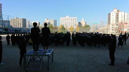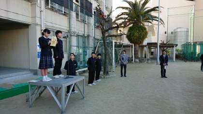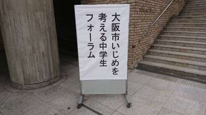 つづいて、生徒会役員の2年1組渡邉くん、2年3組中田さんから、12月8日(日)、阿倍野区民センターにおいて開催された「大阪市いじめを考える中学生フォーラム」に参加した報告です。