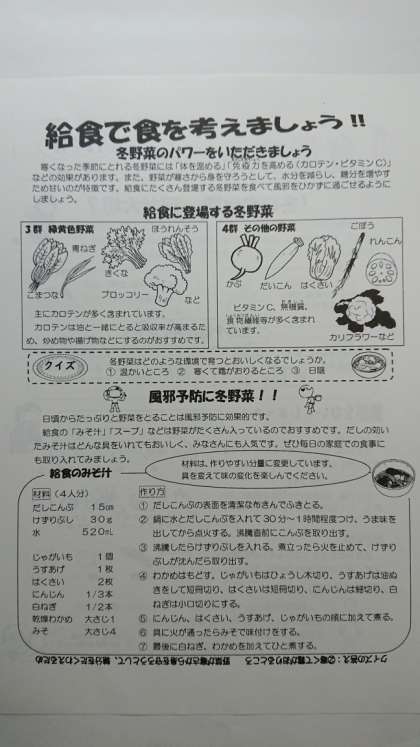 「冬の食生活」についての、ご家庭での「食育」にお役立てください。