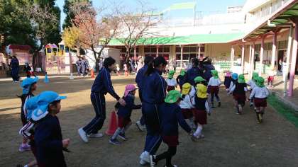 あいさつの後、体操、マラソン、そして一緒に遊びました。