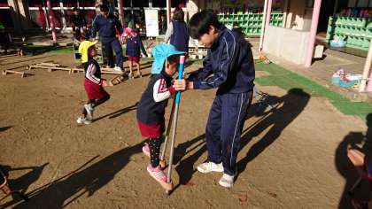 幼稚園児と触れ合うことにより、やさしい心が生まれます。