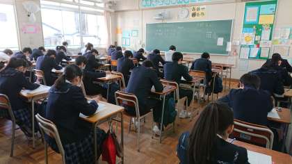 みんな真剣な面持ちで試験問題に取り組んでいます。