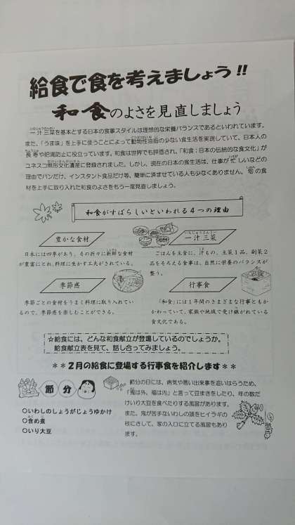 「食育つうしん2月号」を配付しています。
