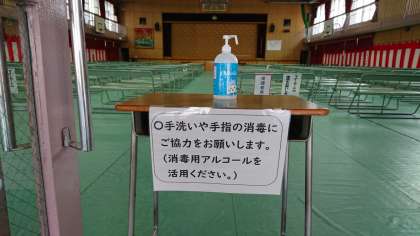 教育委員会の通知に基づき、アルコール消毒、マスクの着用にご協力をお願いします。
