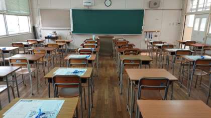 また、急遽、国歌・市歌・校歌「演奏」とし、教室内も1列ずつあけて着席できるよう、3教室から6教室にしました。