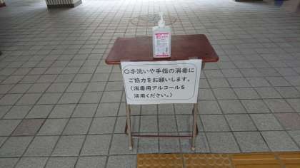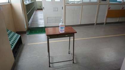 玄関、教室前廊下に手指消毒用アルコールを置いていますので、ご利用ください。