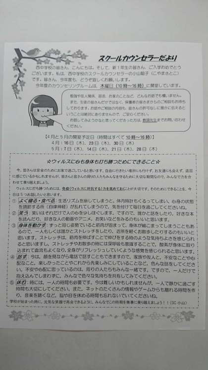 配付物の中に「スクールカウンセラーだより」が入っています。