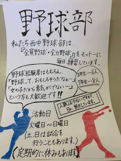 野球部は「全員野球・全力野球」をモットーに、大阪市優勝・大阪府優勝・全国大会出場を目標にして、日々の練習を頑張っています。