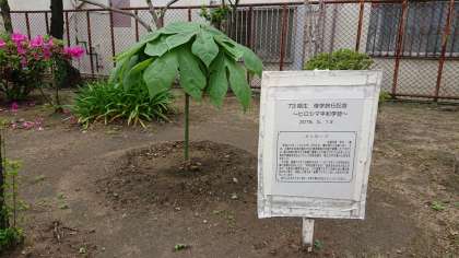 正門を入ったところの73期生の皆さんが植えた「アオギリ」が、こんなに葉を伸ばしてきました。早く学校が本格的に再開する日に向けて、みんなでがんばりましょう。