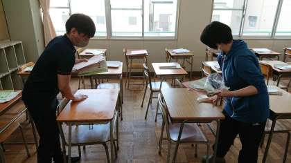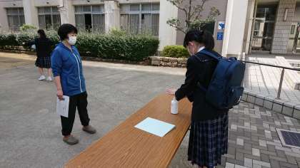 登校時の手指の消毒の徹底、下校後の教室等の消毒の徹底も行っています。
