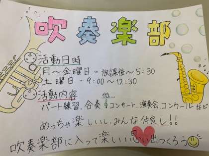吹奏楽部は、普段は平日の放課後と土曜日の午前中に活動しています。