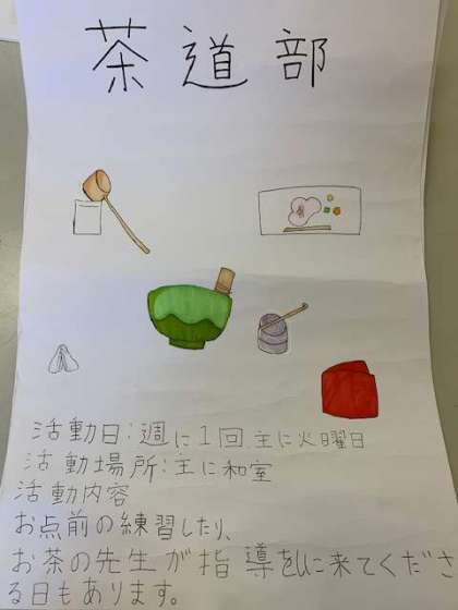 茶道部は3年生2人、2年生3人で、毎週火曜日に活動しています。