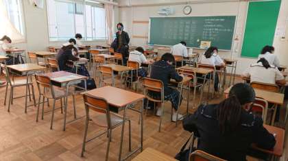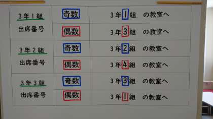 また、各学級を出席番号奇数班、偶数班に分けて入室しています。