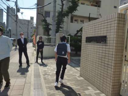 晴れわたった気持ちいい朝、1年生が元気に登校しました。