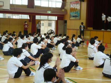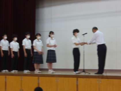 生徒会役員は、舞台の上で、堂々とした様子で認証状を受け取り、全校生徒からも承認の拍手を受けました。