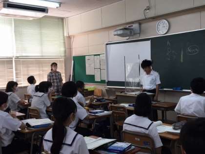 1年1組では、6時限目英語の授業で、C-netのモリス先生も参加しました。