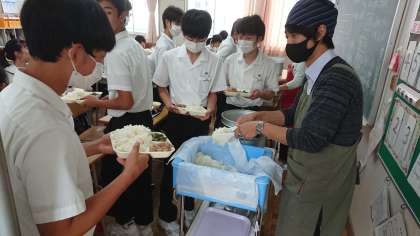 3年生男子は食欲旺盛で、山盛りのおかわりです。