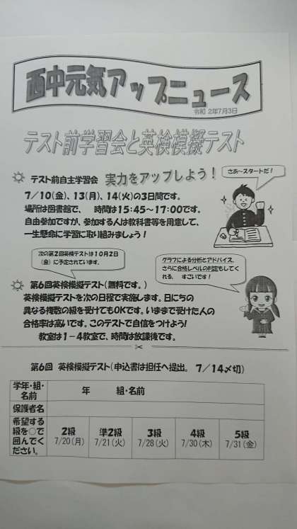 1年生の皆さんも、小学生の時から本校で英検にチャレンジしてくれていましたよね。どんどんレベルアップしていきましょう。